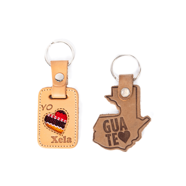 Set de 2 llaveros, de cuero con leyendas de Guatemala, ideal para regalar.